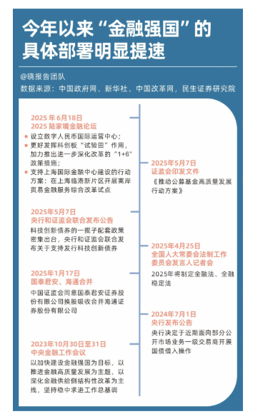 2023年提出到2025年,“金融強國”的具體部署明顯提速。特別是在2025618日,陸家嘴金融論壇提出建設數字人民幣國際運營中心;發揮科創板“試驗田”作用,支持上海國際金融中心建設方案等,讓“金融強國”建設又邁出了一大步。