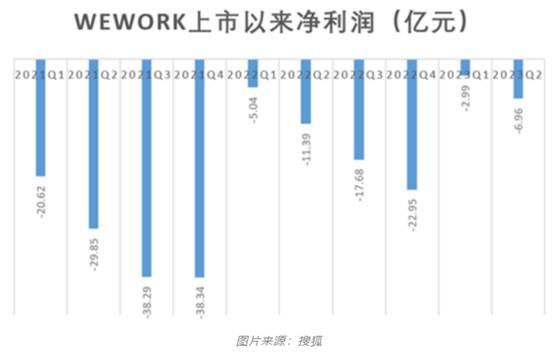 而且,WeWork雖然完成了上市的愿望但也是屬于流血上市。根據(jù)招股書披露,在2020年至2022年,WeWork的虧損分別為32億美元、46億美元、23億美元。到今年上半年,WeWork仍虧損6億美元,并且其背負的債務總額高達213億。