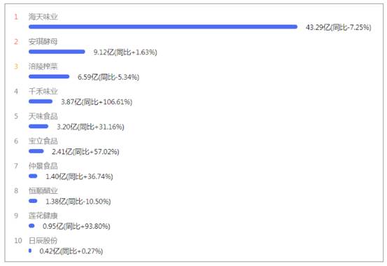 中國調(diào)味品協(xié)會(huì)大數(shù)據(jù)信息中心數(shù)據(jù)顯示,2023年調(diào)味品行業(yè)18家上市公司中,海天味業(yè)從去年同期的經(jīng)營情況第一名滑落至今年的第二名。