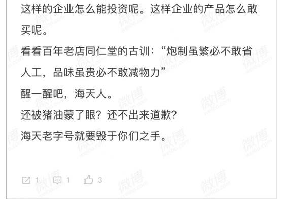 2023年6月,根據(jù)北京商報(bào)的消息,“海天品牌回應(yīng)蠔油內(nèi)疑發(fā)現(xiàn)生蠔”話題登上微博熱搜,有消費(fèi)者爆料稱從海天蠔油內(nèi)發(fā)現(xiàn)疑似生蠔的不明異物。