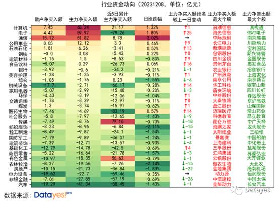 【凈流出前五大行業(yè)】 汽車、非銀金融、電力設(shè)備、房地產(chǎn)、農(nóng)林牧漁