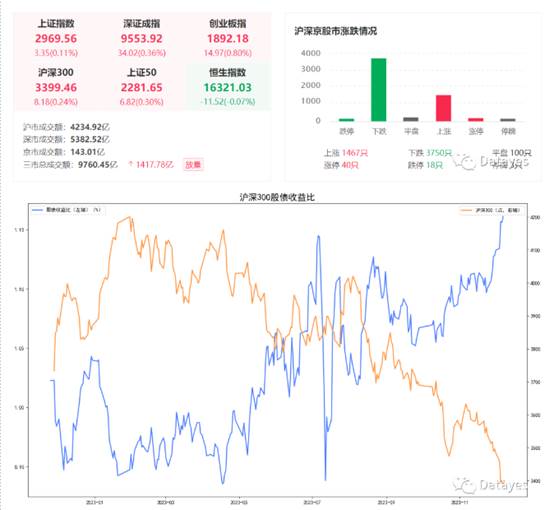 行情上,今天三大指數(shù)都漲,但個股跌多漲少,深成指、創(chuàng)業(yè)板指表現(xiàn)相對較強,雙雙回升至5日線上方。兩市合計成交9618億,較上個交易日放量1416億;北上資金小幅凈買入4.6億元。