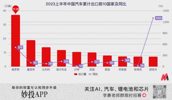 以2023上半年汽車出口情況為例,前十大出口目的地中,僅有英國進入了2022年全球前10大汽車市場(也是因為上汽海外主力經營的榮威、MG等均是英國品牌)。