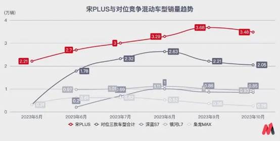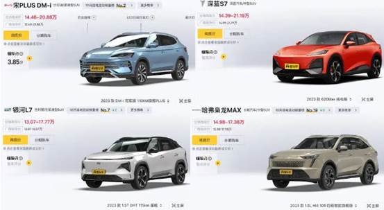 2022年底,長安深藍S7“被”爆料;2023年2月,吉利銀河L7開啟預訂;2023年6月,長城哈弗梟龍MAX也正式發布。這三款產品從尺寸定位,到插電混動屬性,再到最終的售價,完全直奔宋PLUS而去。