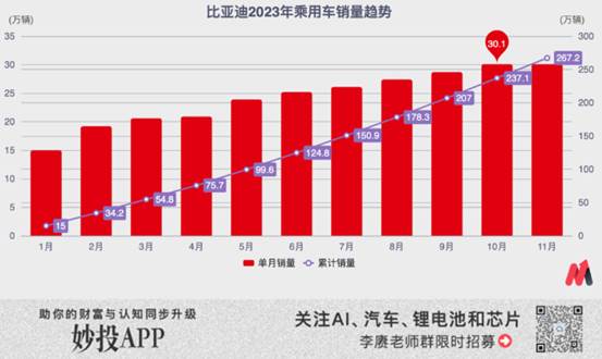 參考比亞迪乘用車在2023年前三季度的銷售與財務結果,其12月銷量大概率能維持在30萬輛水平,即便全年無法超過300萬輛,四季度總銷量超過90萬輛也不難達到。
