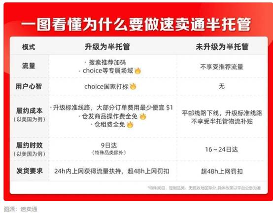 就在最近,速賣通還推出了半托管服務,2月將在美國站率先生效。半托管使商家自主掌握定價和運營的靈活性,幫助商家通過自主運營來獲得更多的溢價空間,同時保留全托管的服務標準和權益。