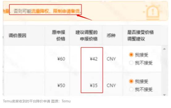 Temu掌握定價權,引入了競價機制,同款商品價低者可以獲得更多流量傾斜;競價失敗的商品則會被限制備貨與上新。如果賣家持續競價不成功,賣家已入倉的貨物將由Temu退回。