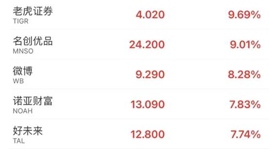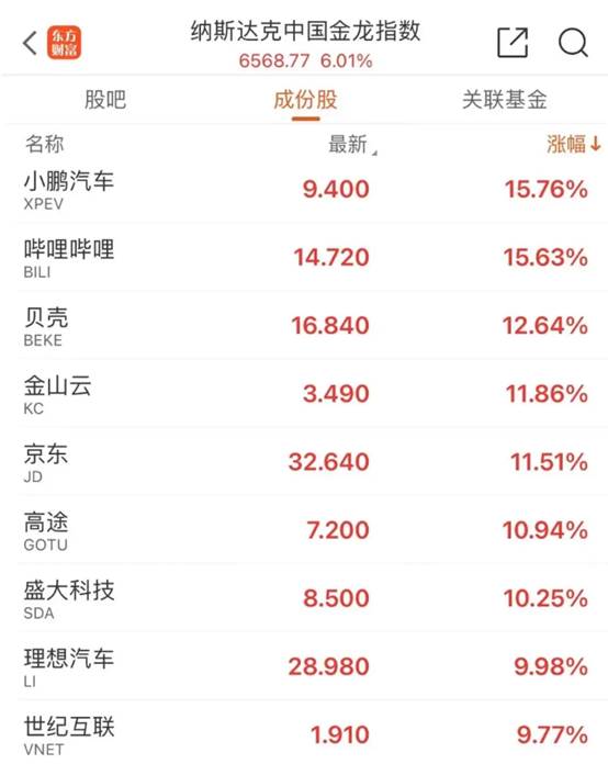 昨夜今晨,在美國上市的中概股也普遍大漲。