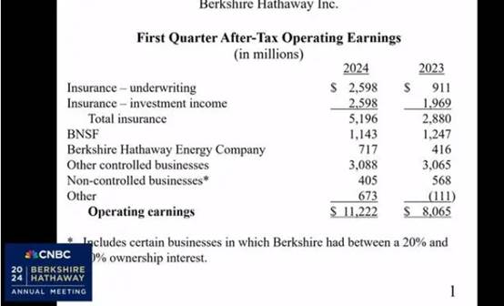 在股東大會問答環節開始前,伯克希爾哈撒韋還發布了今年一季度財報: