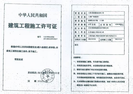 2012年新年伊始,海翔集團CFO李梅代表公司親赴上海,在項目相關文件上簽字,標志著海翔集團投資上海江灣城上城廣場項目拉開了序幕。從此,海翔集團在上海地區乃至華東地區的業務布局逐步展開。截至今日,上城廣場項目施工的最后一個許可證——建筑工程施工許可證已經順利拿到。至此,該項目開工的“四證”齊全,標志著上城廣場項目的開工建設將進入實質性施工階段。