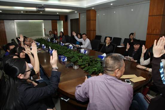 會議上,羅湖區總工會主席主持各位到場代表,進行公平、公正、公開的桂園街道工會委員選舉。到場的工會代表共一百一十人,通過投票,選出21位工會委員候選人,在這21位中間,產生了19位工會委員。其中,僅有三家企業代表獲選成為桂園街道工會委員。海翔集團工會潘主席作為三家企業代表之一成功當選,也說明了海翔集團在發展的同時,仍不忘對員工的生活、福利等投入十分的關注。海翔集團依然堅持以人為本的企業精神;穩健、持久的發展為目標,為建設和諧羅湖盡一份力量。