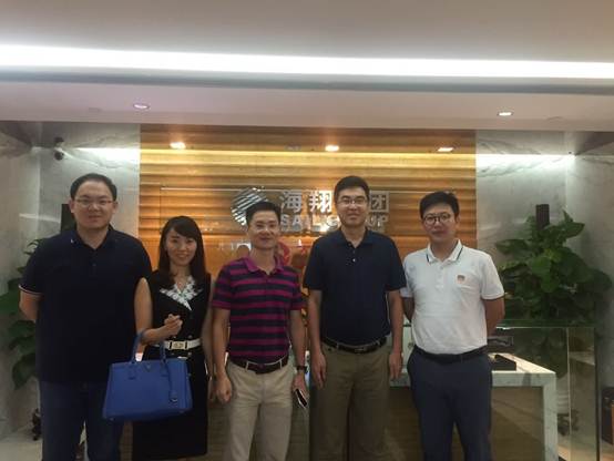 9月24日上午,海翔廣場租戶、深圳前海恒興電子商務科技有限公司總經理王偉先生及財務總監金曉麗小姐一行到訪海翔集團,集團董事長顧總及華拓置業總經理華總等熱情接待了王總一行。